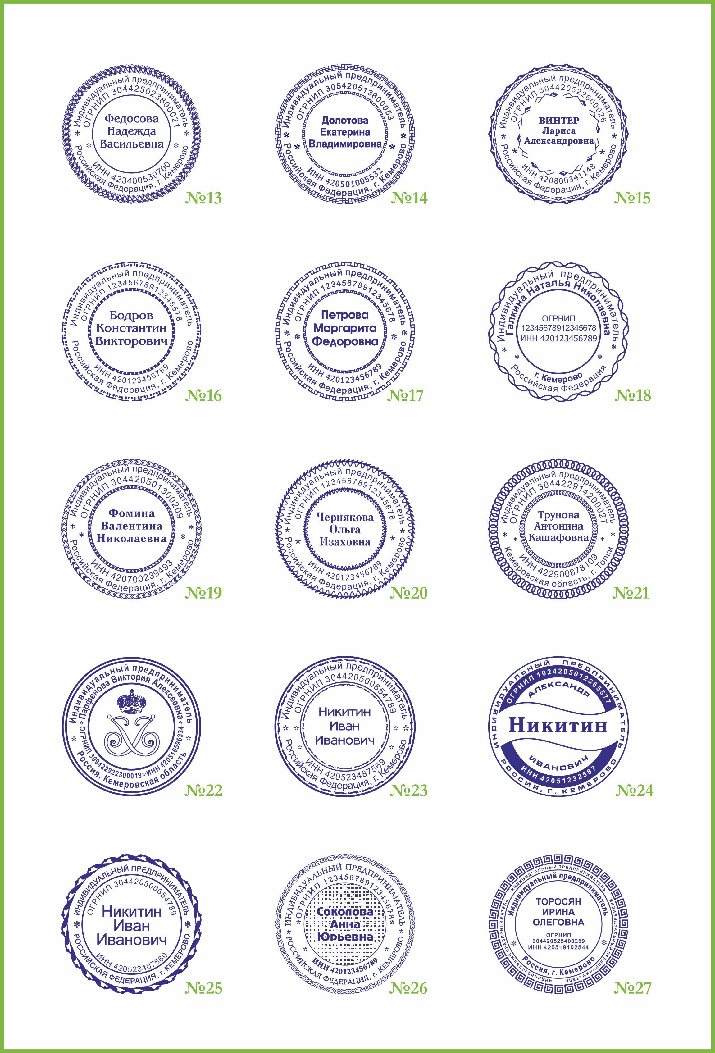 Образцы для ИП